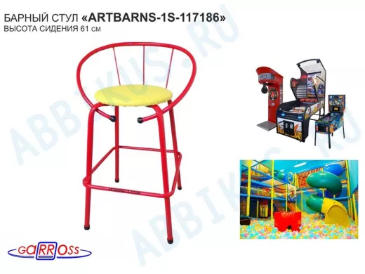 "ARTBARNS 1S-117186" cтул барный, табурет,спинка, высота 0,61м, 22мм,красные ножки/жёлтый верх ткань