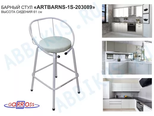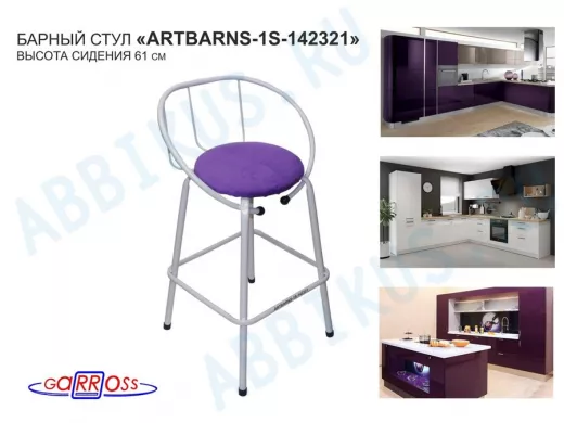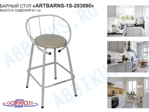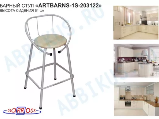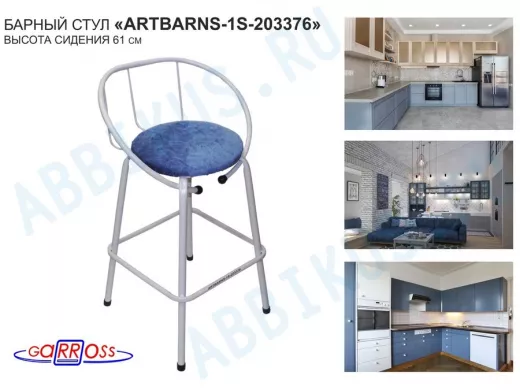 "ARTBARNS 1S-195193" cтул барный, табурет, спинка, высота 0,61метра, 22мм,серые ножки/Вольт 01 ткань