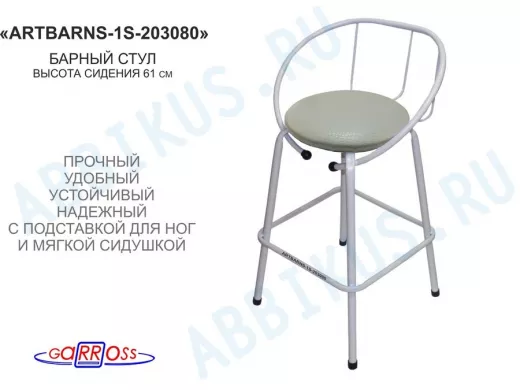Барный стул "ARTBARNS-1S" органично дополнит интерьер модного заведения или домашней кухни. Стильная модель высотой 0,61 метра устойчиво стоит на четырех опорах с удобными подножками.