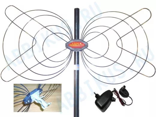 "БАБОЧКА-15А-12ВОЛЬТ" РЕГУЛИРУЕМАЯ АКТИВНАЯ СЕРЕБРИСТАЯ уличная антенна DVB-T2, с регулируемым усили