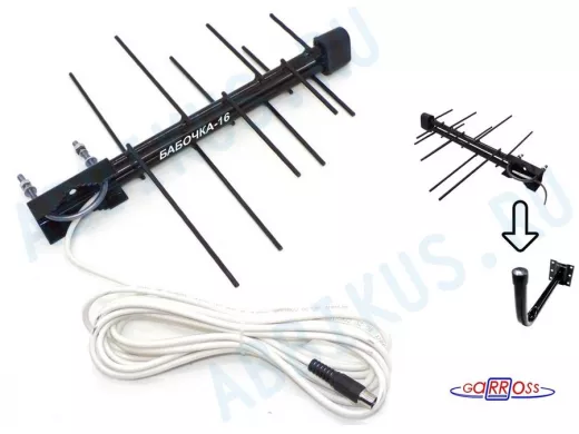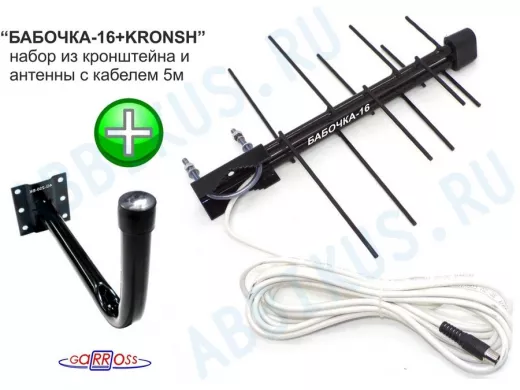 "БАБОЧКА-16+KRONSH" набор кронштейн и антенна уличная для приёма телеканалов DVB-T2, кабель 5 метров