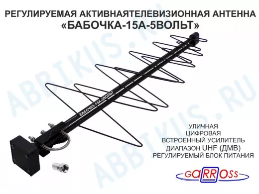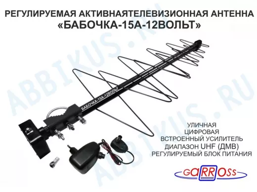 "БАБОЧКА-15А-12ВОЛЬТ" РЕГУЛИРУЕМАЯ АКТИВНАЯ ЧЁРНАЯ уличная антенна DVB-T2, с регулируемым усилителем