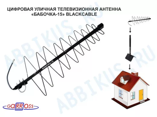 "БАБОЧКА-15А-5ВОЛЬТ" АКТИВНАЯ ЧЁРНАЯ уличная ТВ антенна с усилителем DVB-T2, питание 5В от приёмника