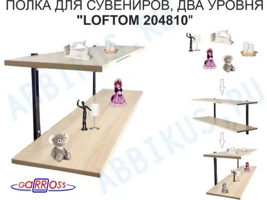 Заказать звонокПолка для сувениров, высота 25см, два уровня "LOFTOM 204810" размер 120х30см, чёрный/дуб сонома