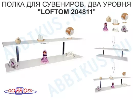 Заказать звонокПолка для сувениров, высота 25см, два уровня "LOFTOM 204811" размер 120х30см, чёрный/сосна выбелен.