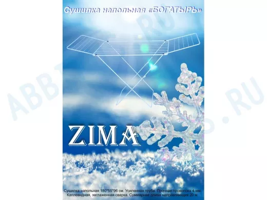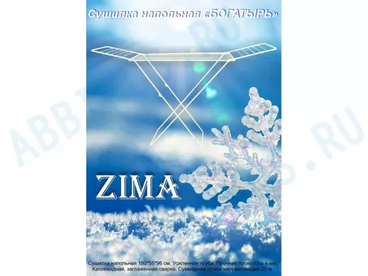 - "БОГАТЫРЬ" ZIMA сушилка напольная БЕЛАЯ 20 метров, предназначена для сушки белья
