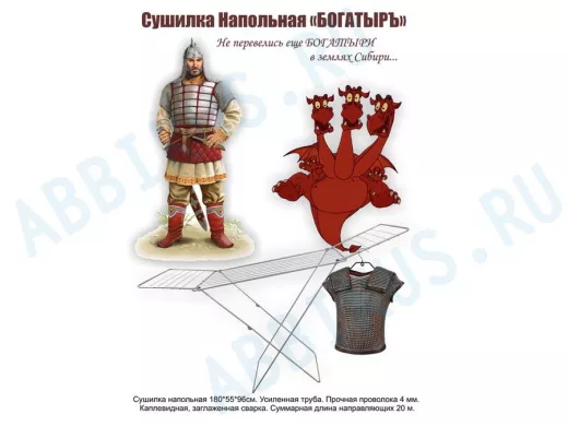 - "БОГАТЫРЬ STYLE - 4" сушилка напольная СЕРЕБРИСТАЯ 20 метров, предназначена для сушки белья