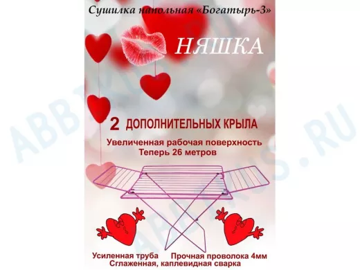 - "БОГАТЫРЬ-3" НЯШКА сушилка напольная РОЗОВАЯ 26 метров, предназначена для сушки белья