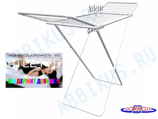 В корзину Купить в 1 клик "ATLETTE-81296" сушилка напольная белая, ВЫДЕРЖИТ ДЕВУШКУ труба 22мм, проволока 5мм, до 50кг