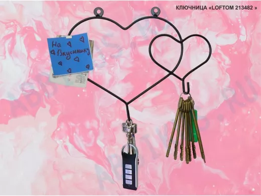 Заказать звонокКлючница с магнитиком для записки, вешалка в прихожую, два сердца, чёрный "ABILOVE 213482"