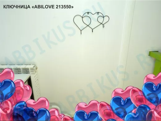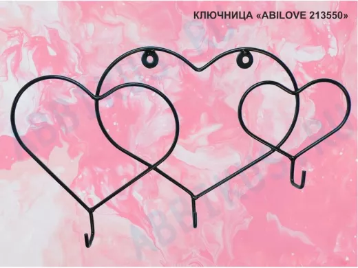 Заказать звонокКлючница, держатель полотенец, вешалка в прихожую, три сердца с крючками, чёрный "ABILOVE 213550"