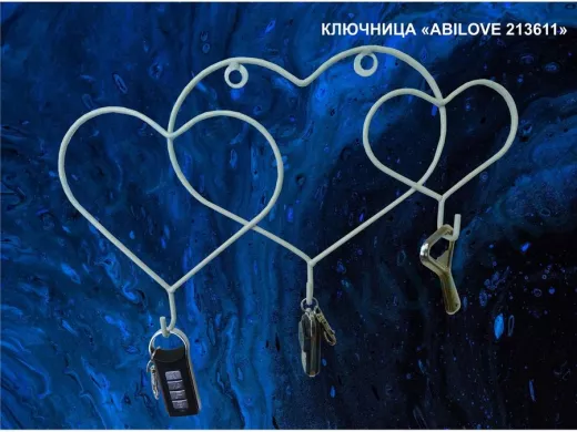 Заказать звонокКлючница, держатель полотенец, вешалка в прихожую, три сердца с крючками, серый "ABILOVE 213611"