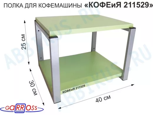 Заказать звонокПолка под кофемашину к стене, высота 27см, серый каркас "КОФЕиЯ 211529" полки 30х40см, салатовый