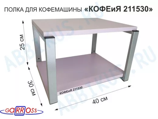 Заказать звонокПолка под кофемашину к стене, высота 27см, серый каркас "КОФЕиЯ 211530" полки 30х40см, лаванда