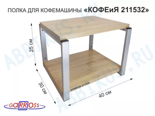 Заказать звонокПолка под кофемашину к стене, высота 27см, серый каркас "КОФЕиЯ 211532" полки 30х40см, дуб