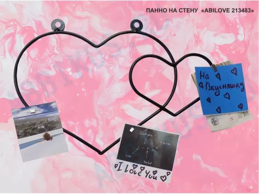 Панно настенное, декоратичное с 3 магнитами для записок и фотографий, два сердца, чёрный "ABILOVE 213483" подходит для оформления комнаты с помощью фотографий, картинок, вырезок. В набор входят: мудборд в виде сердец, магниты, комплектующие для крепления на стену. Система держателя выполнена в виде двух сердечек, которую можно оформить в виде свадебного фотоальбома, стены желаний, карты мечты. На железную рамку можно повесить любимые постеры, информационные плакаты, несколько записок в качестве быстрых напоминалок, красивые картинки, украшения. Стальная основа держателя подходит для оформления декоративного панно, подвешивания на магниты фотографий, карточек с необходимой информацией, забавных коллажей.