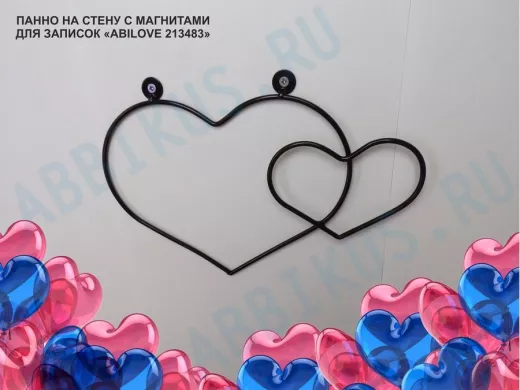Заказать звонокПанно на стену с 3 магнитами для записок и фотографий, два сердца, чёрный "ABILOVE 213483"