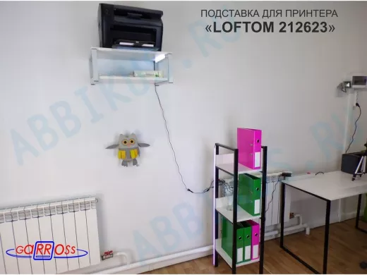 - Полка надежно крепится к стене при помощи анкеров или шурупов с дюбелями, на ней можно разместить принтер, сканер, МФУ и другую офисную технику