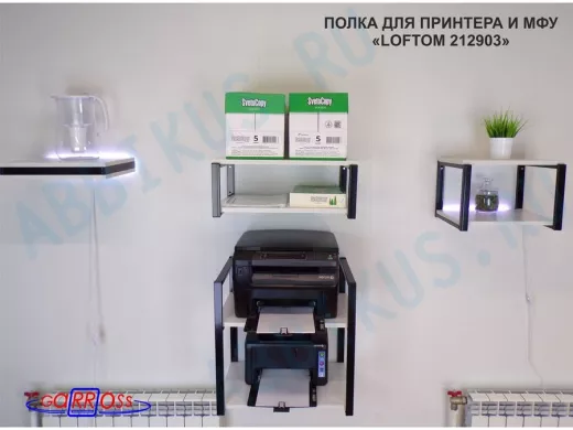 Заказать звонокПолка под принтер или МФУ, высота 54см черная "LOFTOM 212903" 2 уровня, 35х54см, сосна