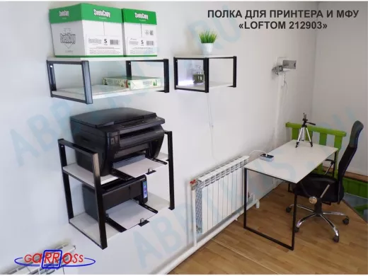 - Универсальная полка для офисной техники (МФУ, принтеров, сканерови др) позволяет эффективно использовать место в помещении.