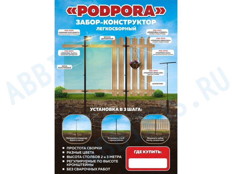 В корзину Купить в 1 клик "PODPORA" (без сайтов) рекламная листовка,забор-конструктор PODPORA, формат А3, 115гр, мелованная