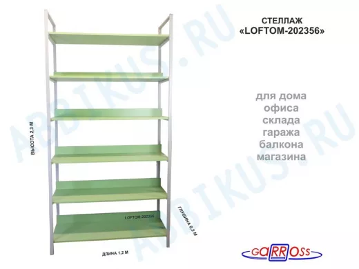 Заказать звонокСтеллаж 6 полок, серый "LOFTOM-202356" салатовый, высота 230, ширина 33, длина 120см, полка 120х30см