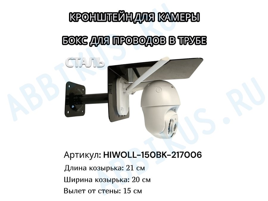 В корзину Купить в 1 клик Кронштейн для камеры и прожектора с козырьком "HIWOLL-150BK-217006" черный, вылет 15см, сталь