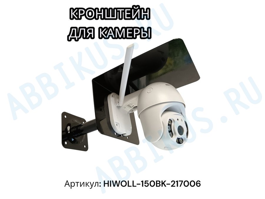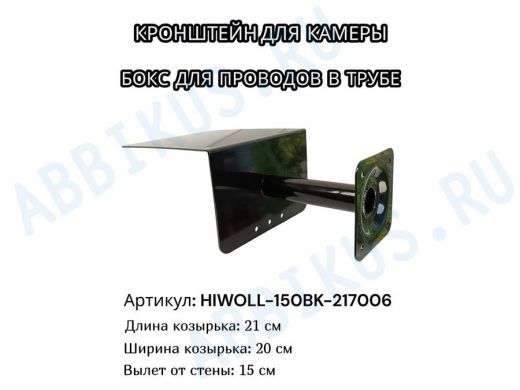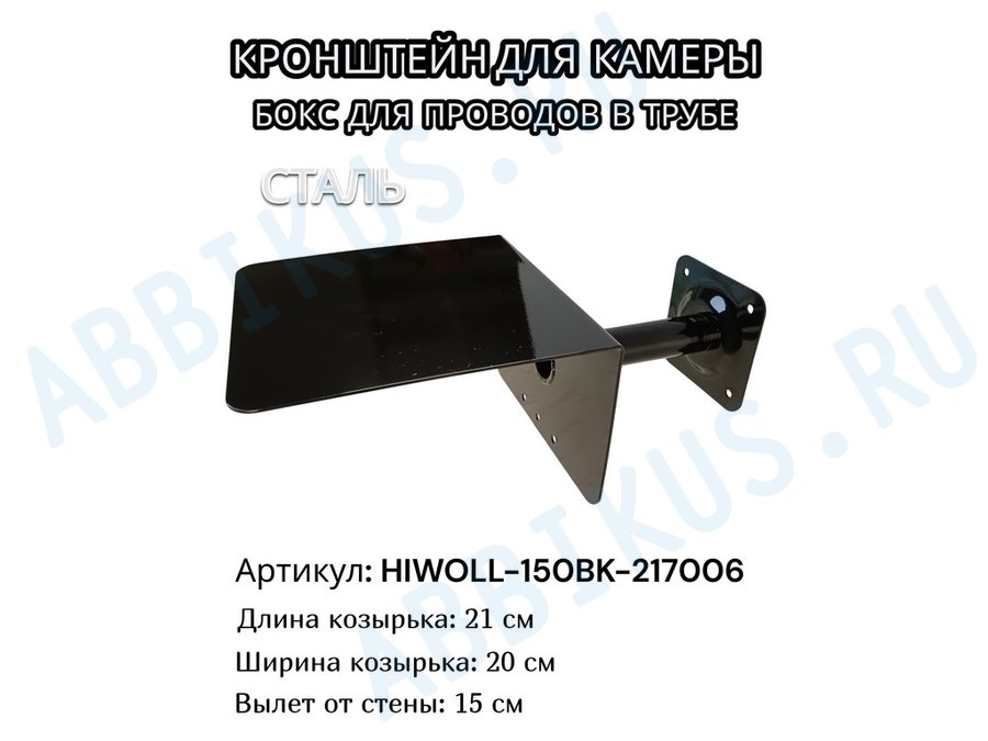 Кронштейн для камеры и прожектора с козырьком "HIWOLL-150BK-217006" черный, вылет 15см, сталь