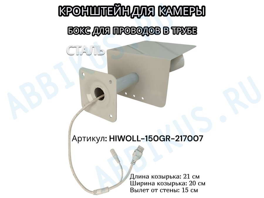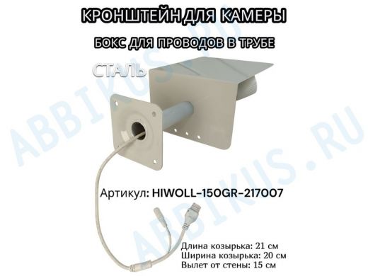Кронштейн для камеры и прожектора с козырьком "HIWOLL-150GR-217007" серый, вылет 15см, сталь