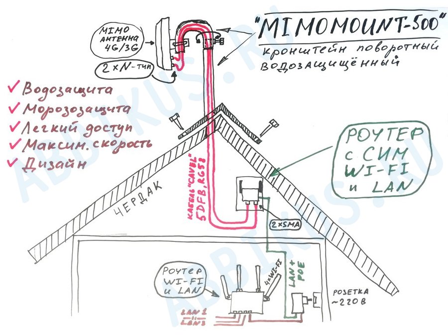 Для влагозащищенного ввода двух кабелей используется кроншейн "ADELA-2",