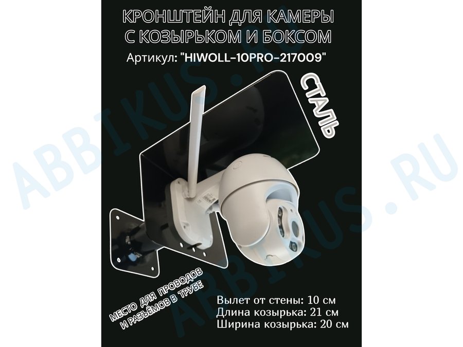В корзину Купить в 1 клик Кронштейн с боксом и козырьком для видеокамеры "HIWOLL-10PRO-217009" черный, вылет 10см, сталь