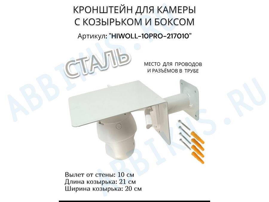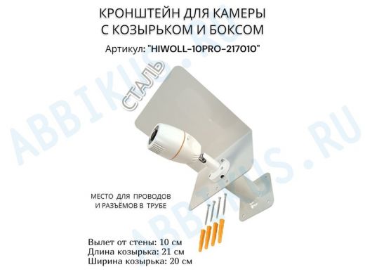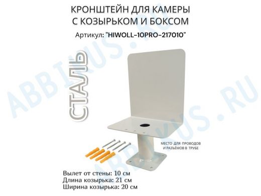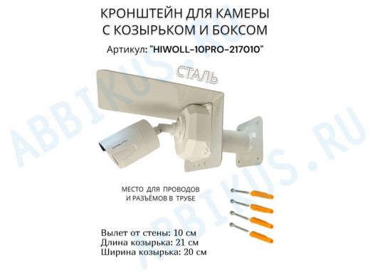 В корзину Купить в 1 клик Кронштейн с боксом и козырьком для видеокамеры "HIWOLL-10PRO-217010" серый, вылет 10см, сталь