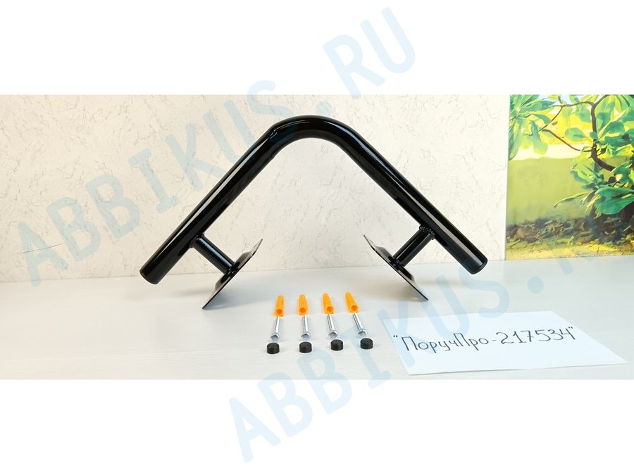 Поручень угол 90 гр, внутренний, 25х25см "ПоручПро-217532" вылет 10см, черный, 2 опоры, диаметр 32мм
