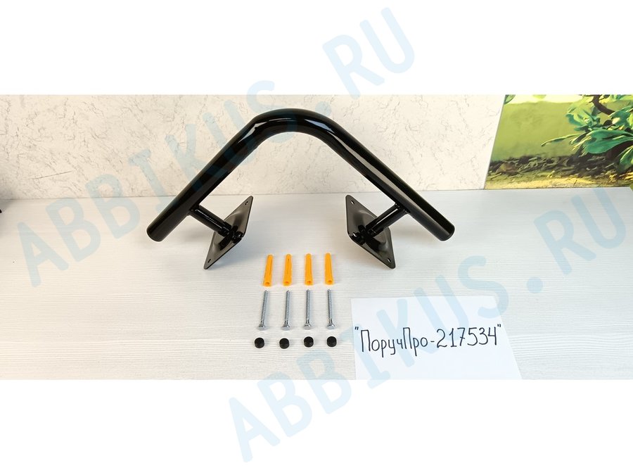 Поручень прямой 60см "ПоручПро-217679" пристенный, для дома и улицы, вылет 10см, черный,диаметр 32мм