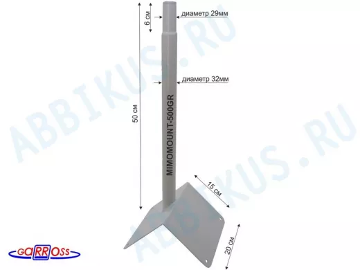 Заказать звонокКронштейн на конек для антенн, диаметр 32мм "MIMOMOUNT-500GR-105610" серый, обжатый, высота 50 см