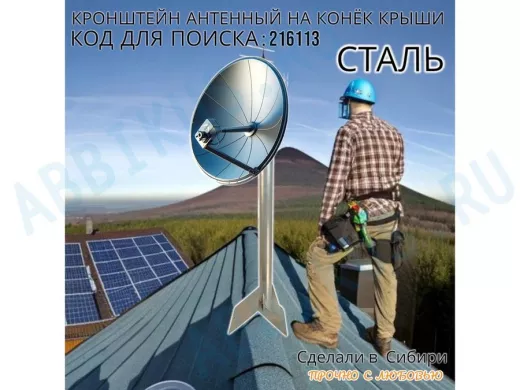 - Кронштейн усилен 3-мя стальными косынками, это позволяет получить большую прочность для крепления спутниковых тарелок 0,6м и любых других антенн.