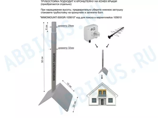 Применяется для наращивания длины антенных кронштейнов, совместима с креплениями к стене и на конек крыши: