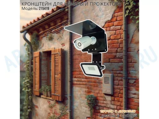 Заказать звонокКронштейн для камеры и прожектора с боксом с пластиной и козырьком"HIWOLL-215419" сталь, чёрный