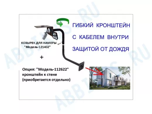 - Кронштейн с козырьком предназначен для крепления видеокамер и защиты их от дождя, снега и солнца.
