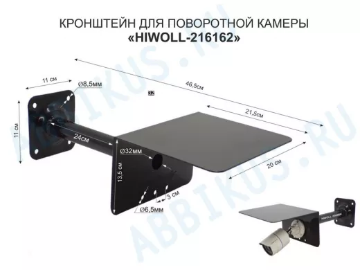 Заказать звонокКронштейн для поворотной камеры с вылетом 25см и козырьком для защиты "HIWOLL-216162" черный, сталь