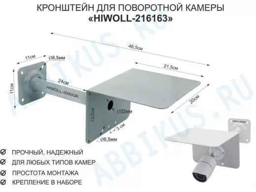 Заказать звонокКронштейн для поворотной камеры с вылетом 25см и козырьком для защиты "HIWOLL-216163" серый, сталь