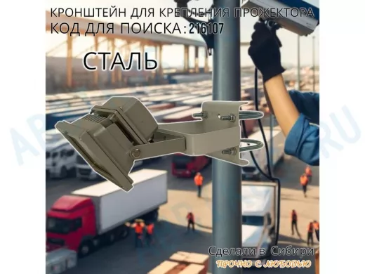 Кронштейн усиленный для крепления прожектора на трубе до 51мм "ПРОЖЕКРЕП-216107" сталь, цвет серый
