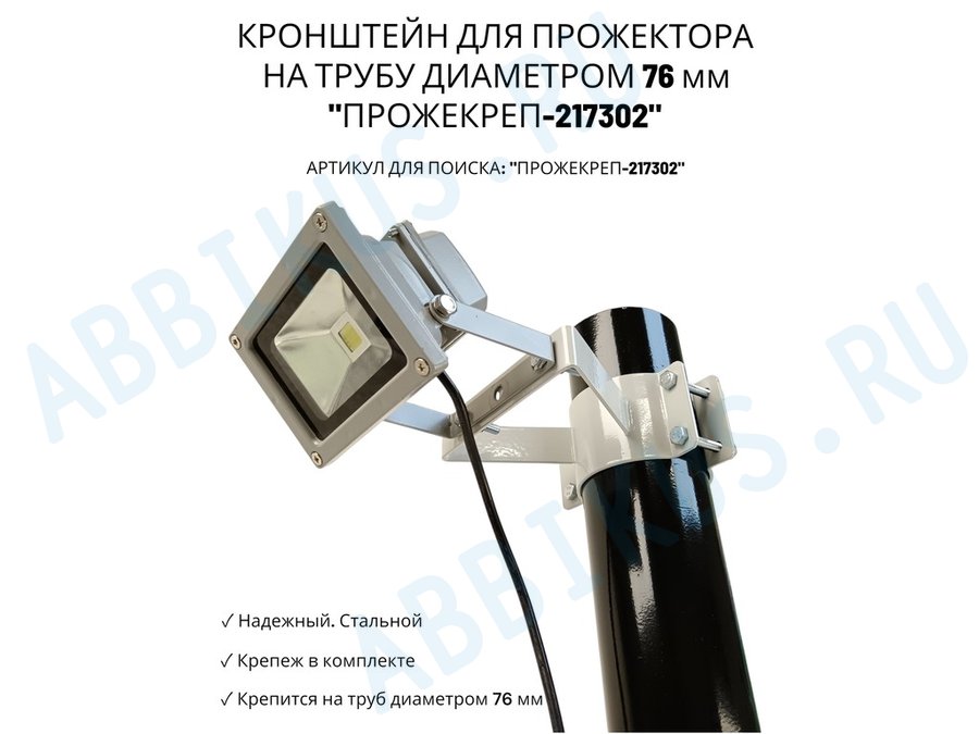 - Кронштейн позволяет быстро зафиксировать прожектор на трубу.