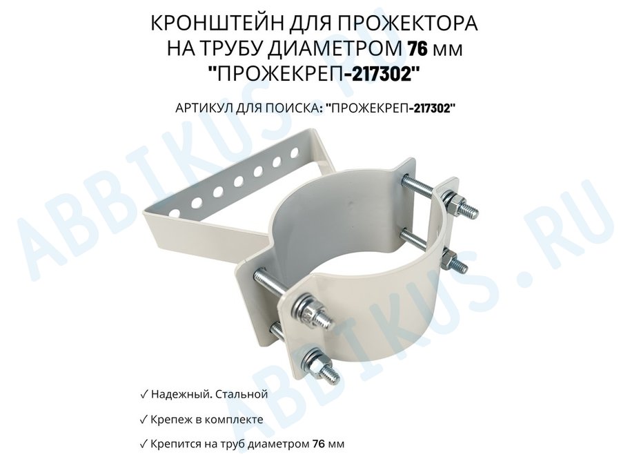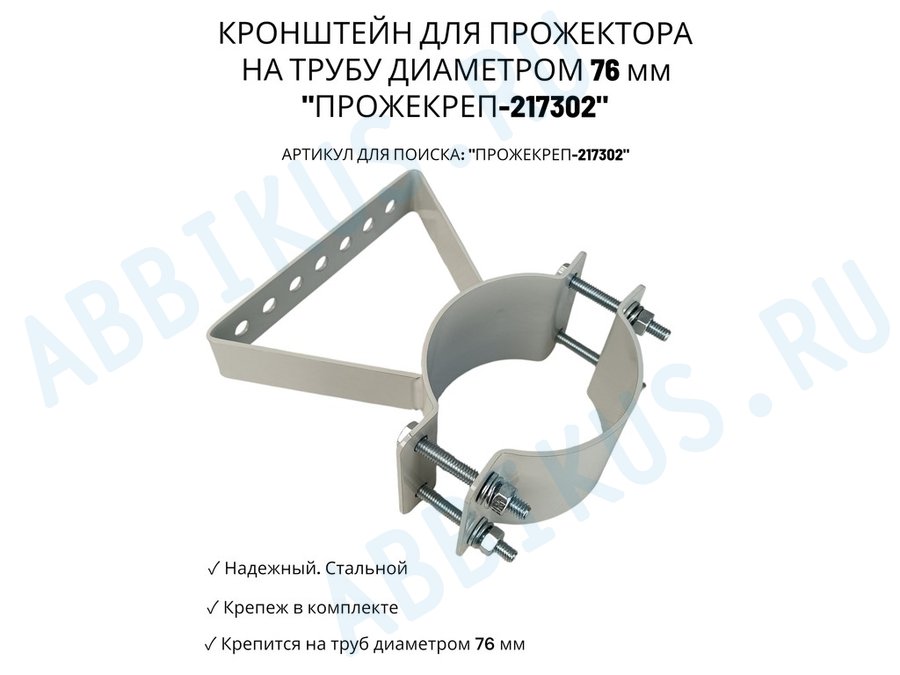 Кронштейн универсальный на трубу диаметром 76мм "ПРОЖЕКРЕП-217302" сталь, серый