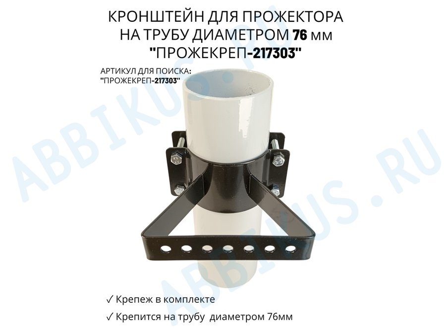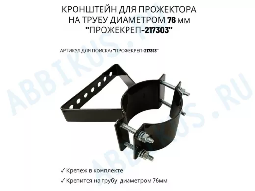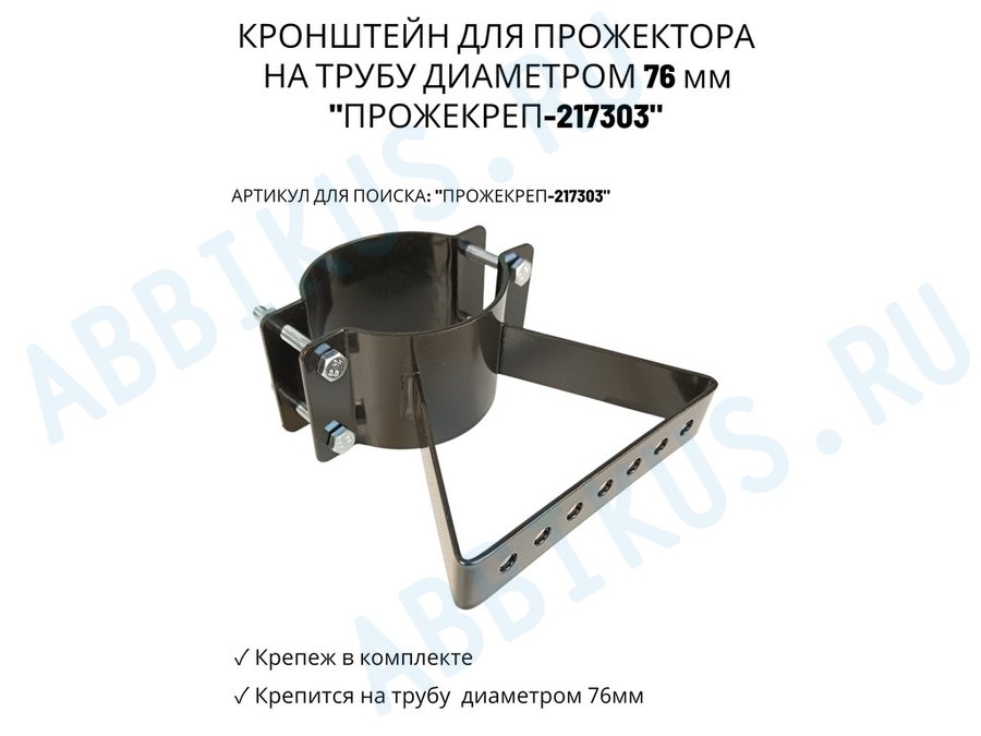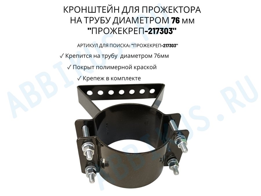 Кронштейн универсальный на трубу диаметром 76мм "ПРОЖЕКРЕП-217303" сталь, черный