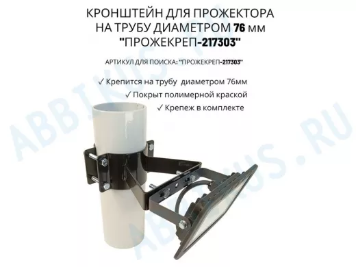 - Кронштейн позволяет быстро зафиксировать прожектор на трубу.