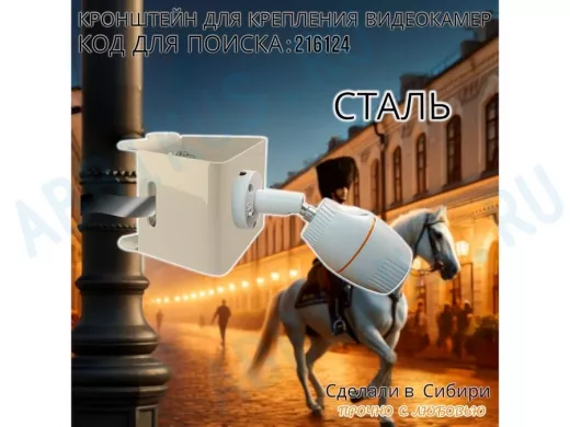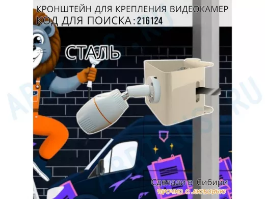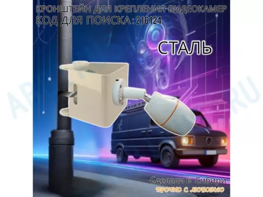 - Универсальный усиленный кронштейн предназначен для крепления видеокамеры на трубе диаметром от 15 до 51мм или на столбе.