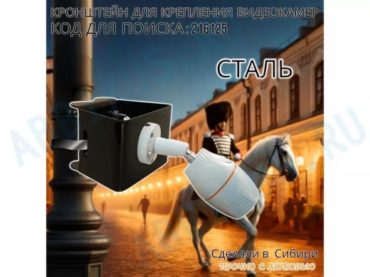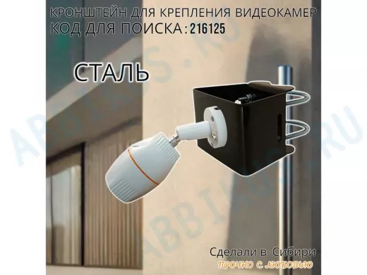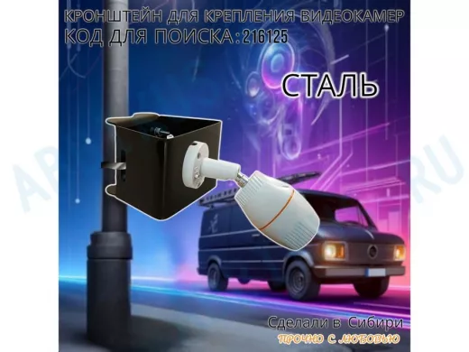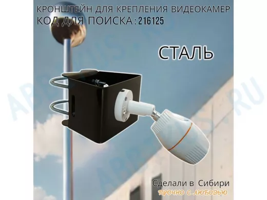 - Универсальный усиленный кронштейн предназначен для крепления видеокамеры на трубе диаметром от 15 до 51мм или на столбе.