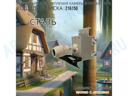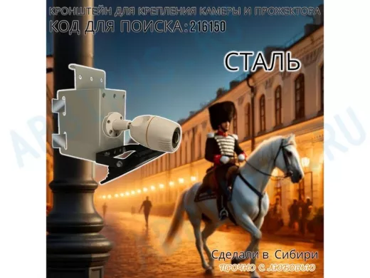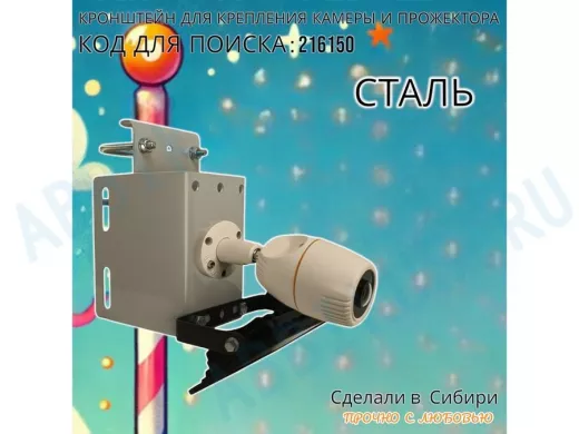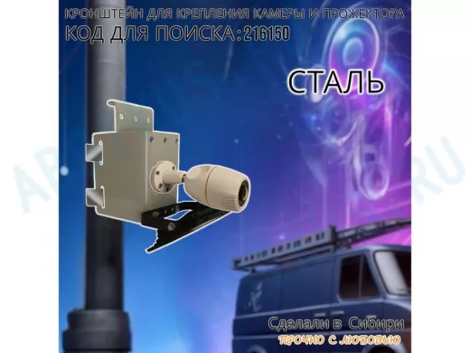 - Универсальный усиленный кронштейн предназначен для крепления прожектора или камеры на трубе диаметром от 15 до 51мм или на столбе.