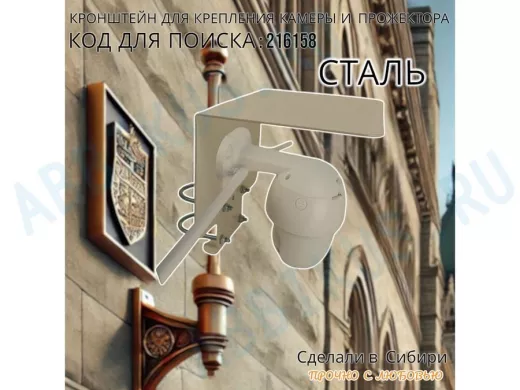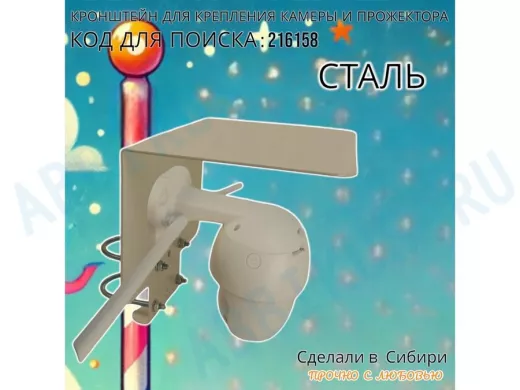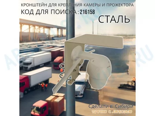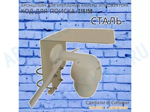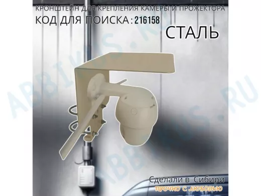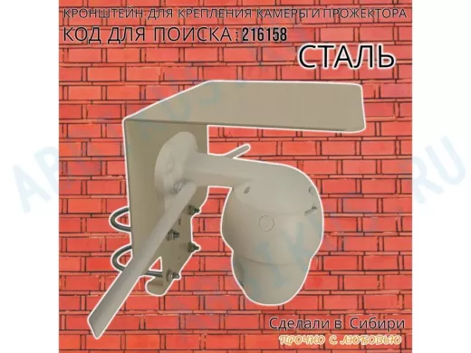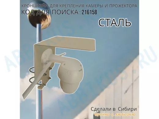 Заказать звонокКронштейн с козырьком на трубу для камеры и прожектора "ПРОЖЕКРЕП-216158" сталь, два хомута, серый